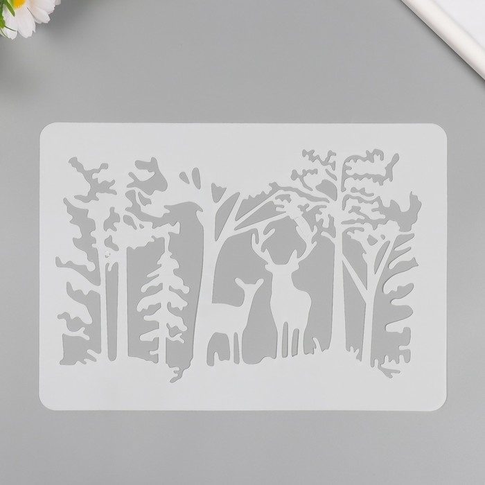Трафарет пластик "Олени в лесу" 21х29,7 см