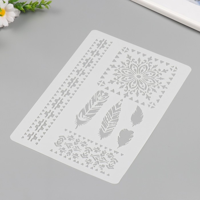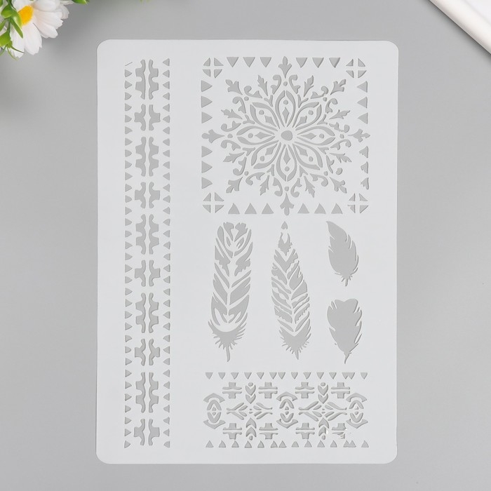 Трафарет пластик "Узоры, перья" 21х29,7 см
