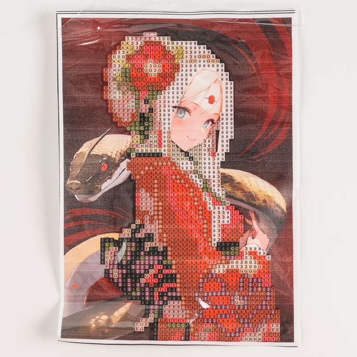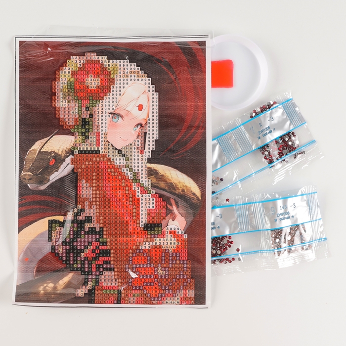 Алмазная мозаика на новый год с частичным заполнением на холсте «Змея и девушка аниме», 15 х 21 см, новогодний набор для творчества, символ года 2025