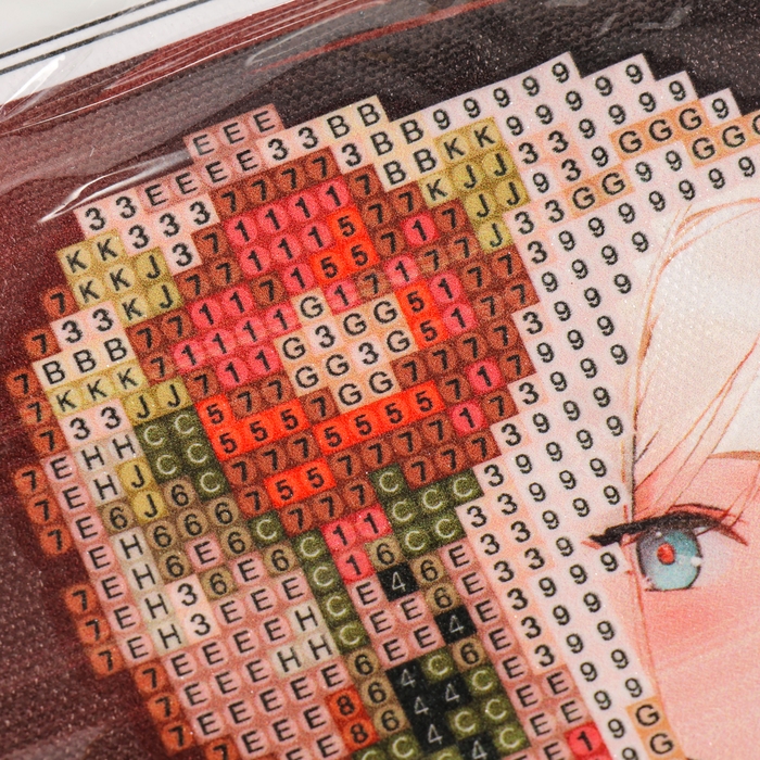Ребёнку предстоит разложить кристаллики карандашом по пронумерованной схеме, заполнив всё полотно. Холст с клеевым покрытием будет надёжно удерживать стразы.