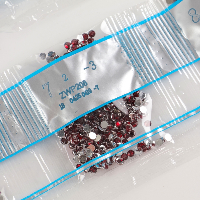 - Из пакетика с номером, который соответствует схеме, отсыпьте в ёмкость немного страз.
