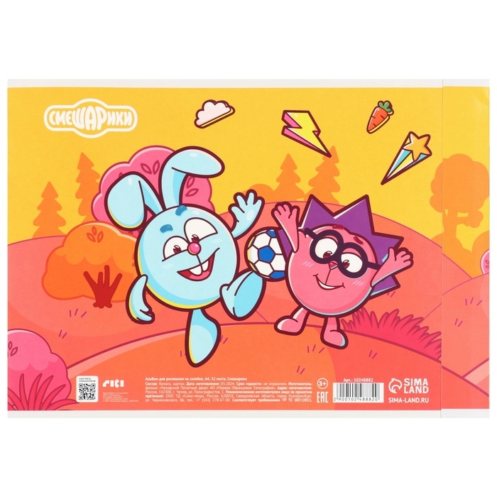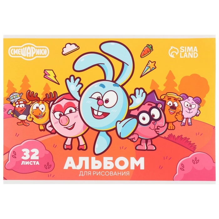 Альбом для рисования на склейке, А4, 32 листа, Смешарики