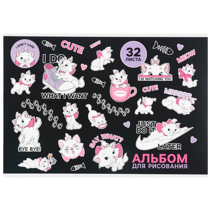 Альбом для рисования на склейке, А4, 32 листов, "Мари", Коты-аристократы