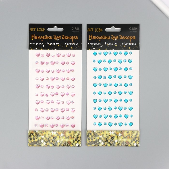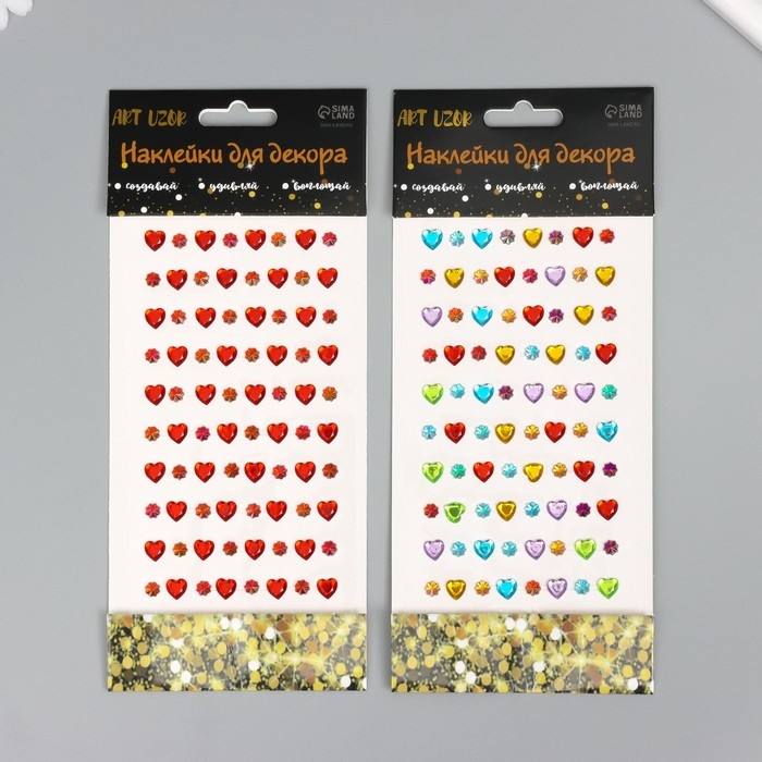 Наклейка пластик стразы "Сердечки стразы" МИКС 10х23 см