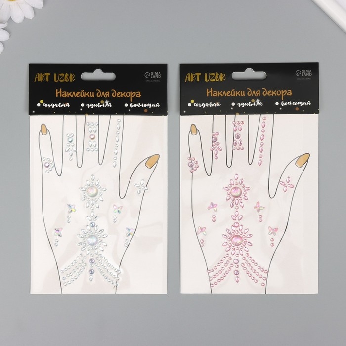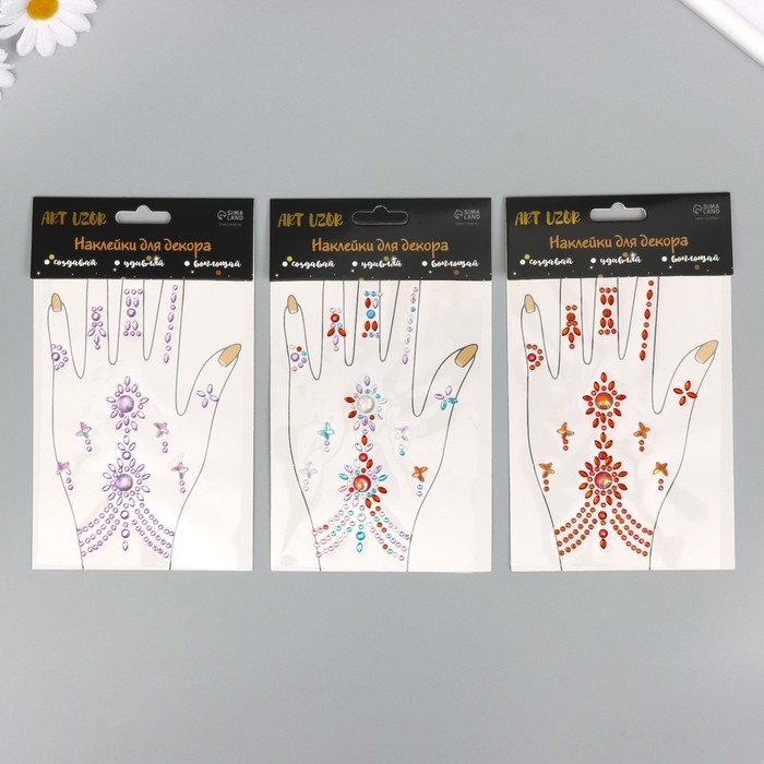 Наклейка пластик стразы "Цветочный браслет" МИКС 12х20,3 см