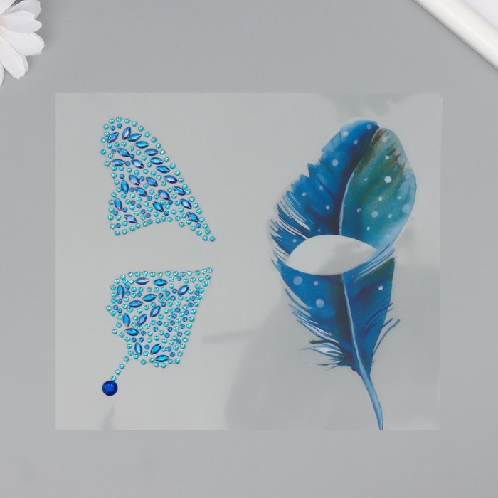 Наклейка пластик стразы "Крыло бабочки и перо" 16х17 см