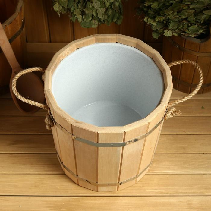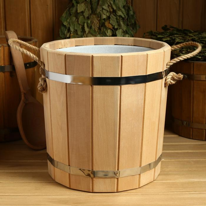 Запарник-ведро из липы, 13 л, пластиковая вставка, нержавеющий обод, "Еловая ветка"