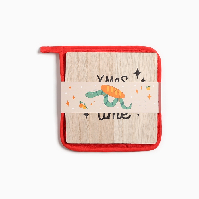 Новый год. Символ года. Змея. Набор кухонный Cooking time: подставка 15*15 см, прихватка 17*17см