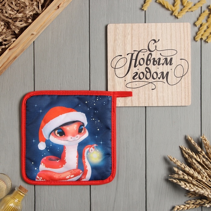 Новый год. Набор кухонный С новым годом: подставка 15*15 см, прихватка 17*17см