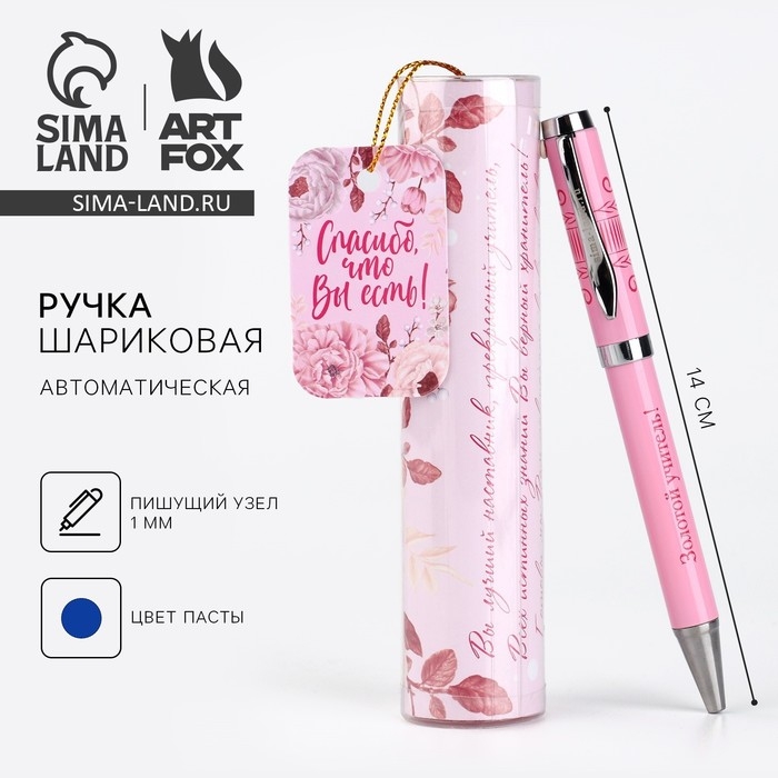 Ручка в тубусе «Золотому учителю, С Уважением!», пластик, синяя паста, 1.0 мм