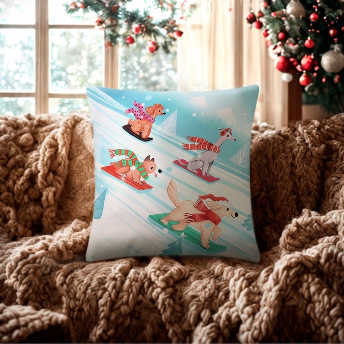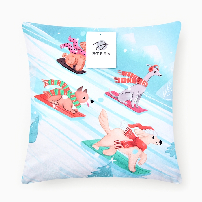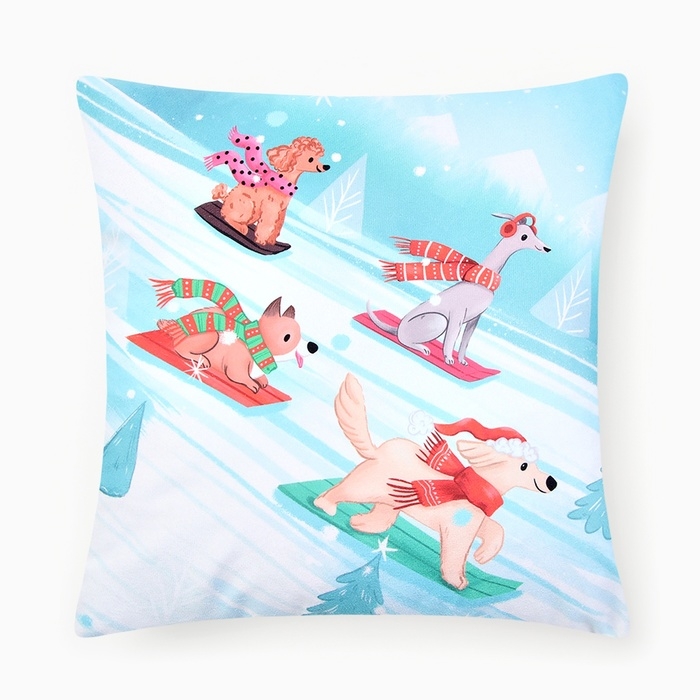 Новый год. Чехол на подушку Этель "Snowboarding dogs" 40х40 см, 100% п/э, велюр