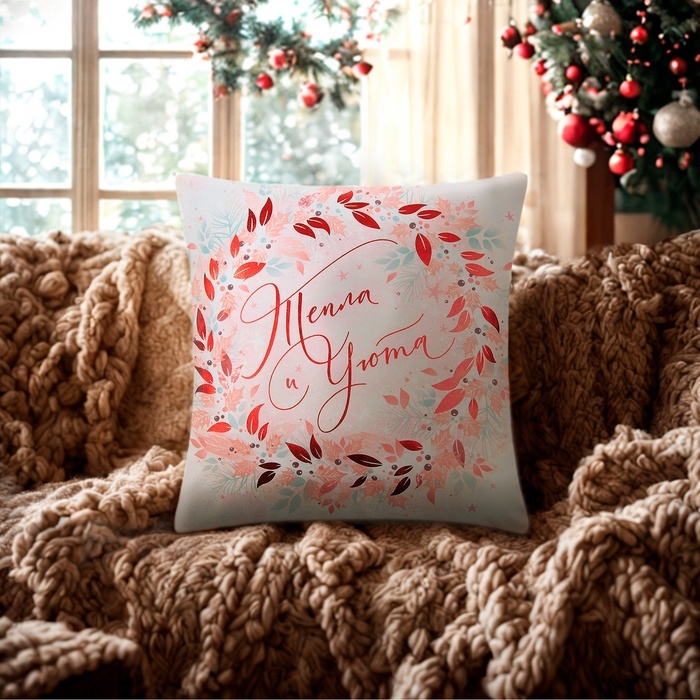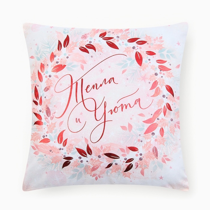 Новый год. Чехол на подушку Этель "Тепла и уюта" 40х40 см, 100% п/э, велюр