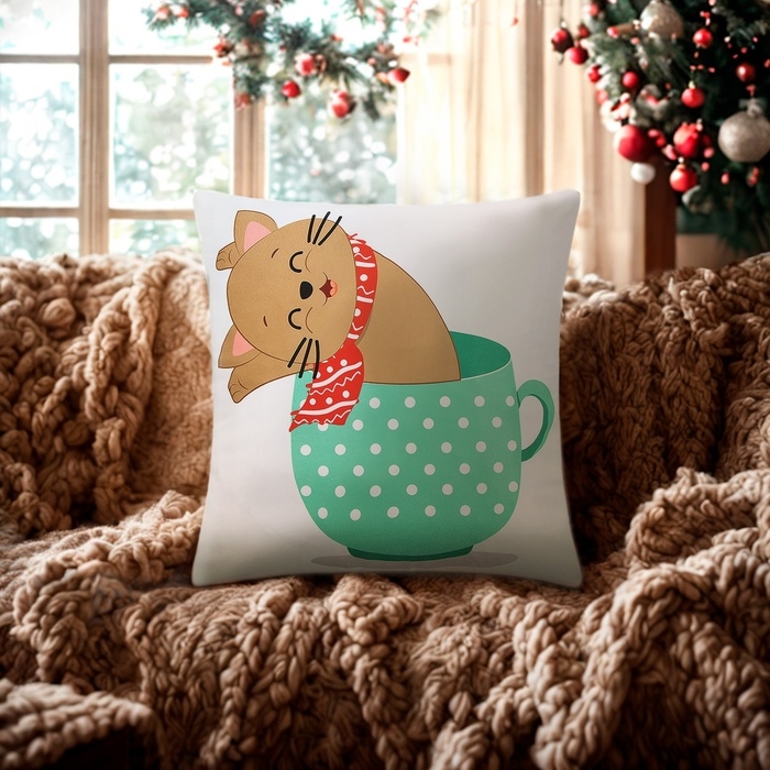 Новый год. Чехол на подушку Этель Новогодняя чашка 40х40см,100% п/э
