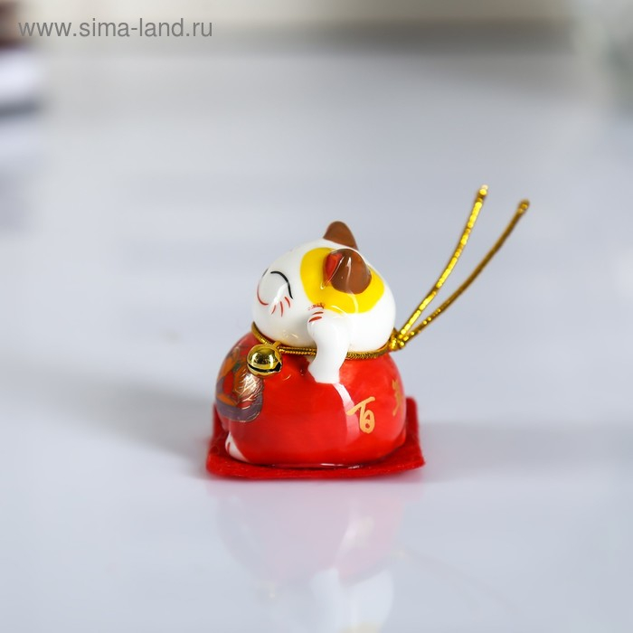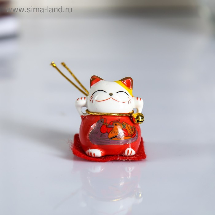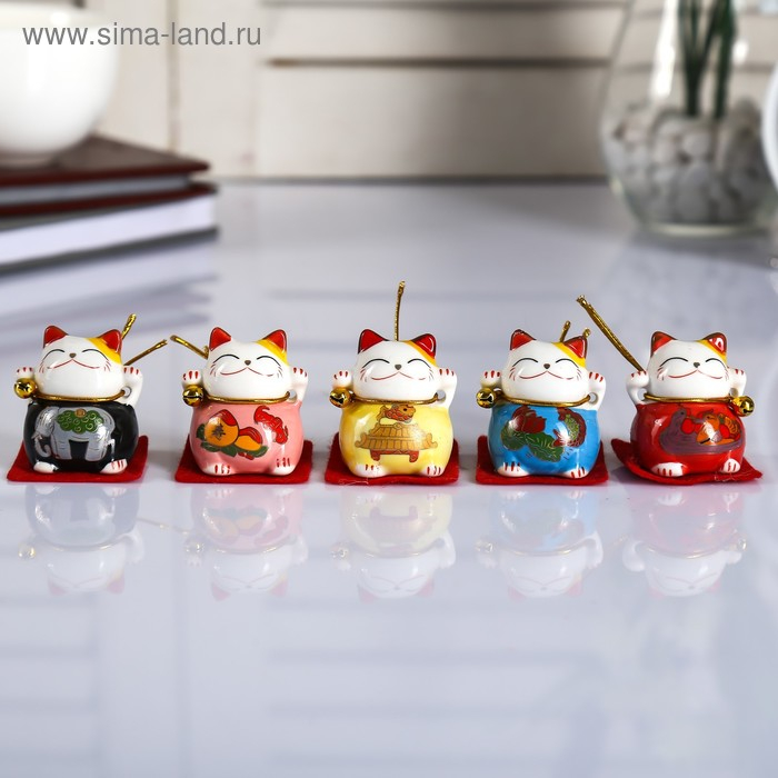 Сувенир керамика "Манэки-нэко с рисунком, на коврике" набор 5 шт 4х4х3,5 см