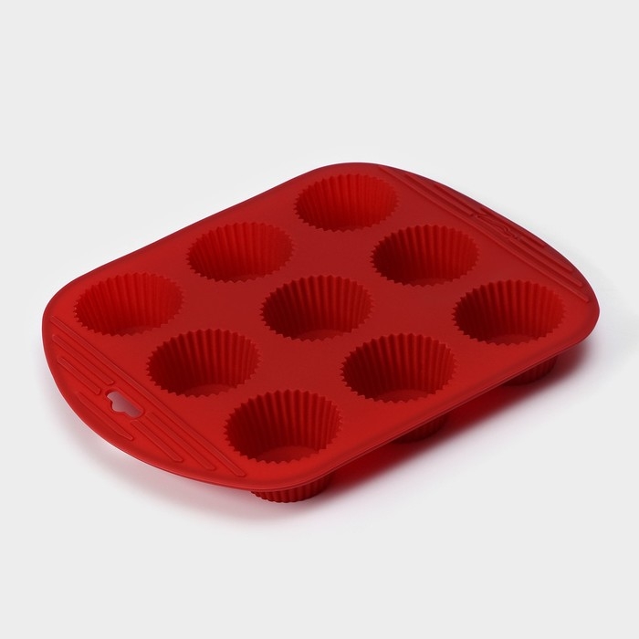 Форма для выпечки Доляна «Сладости.Круг реб», силикон, 26,5×21,5×3 см, 9 ячеек (5,5×3 см), цвет коричневый