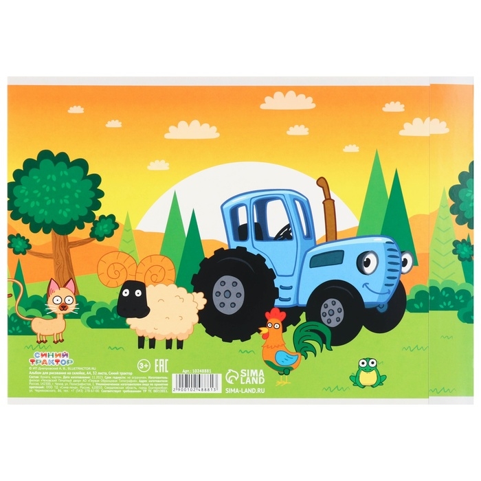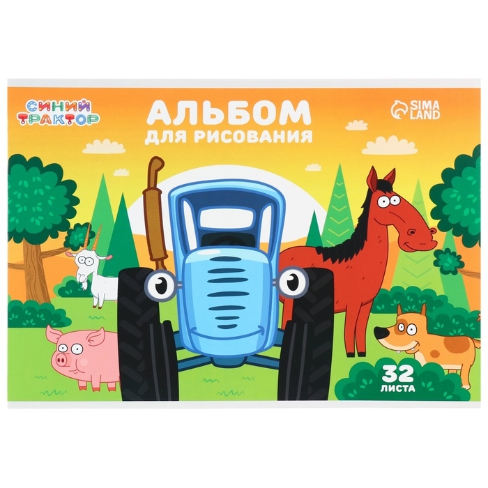 Альбом для рисования на склейке, А4, 32 листа, Синий трактор