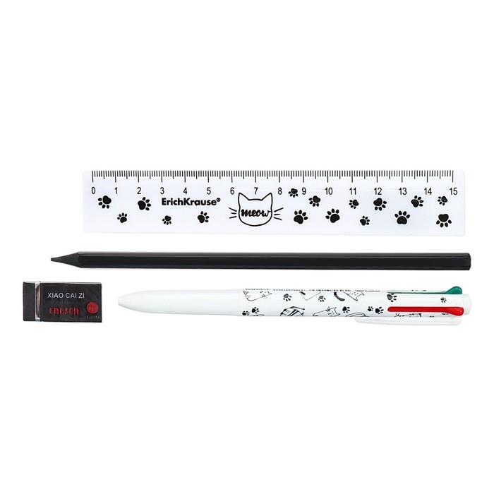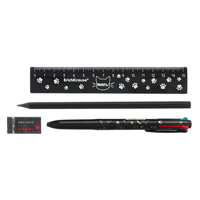 Пенал мягкий 1 отделение, 190 x 80 x 40 мм, Calligrata, с наполнением 4 предмета, "Следуй за мной", для девочек
