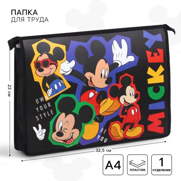 Папка для труда А4, на молнии, Микки Маус
