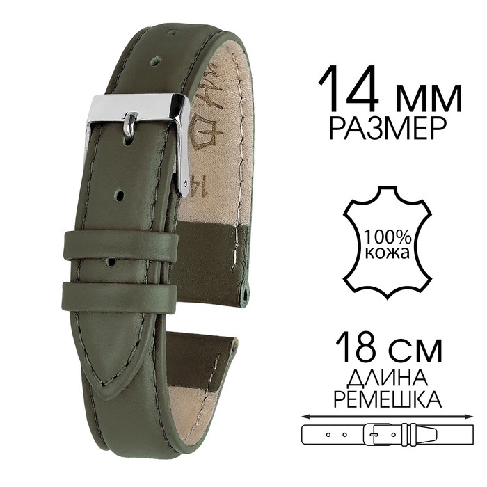 Ремешок для часов, 14 мм, запряжник 75 мм, горт 105 мм, натуральная кожа, зелёный