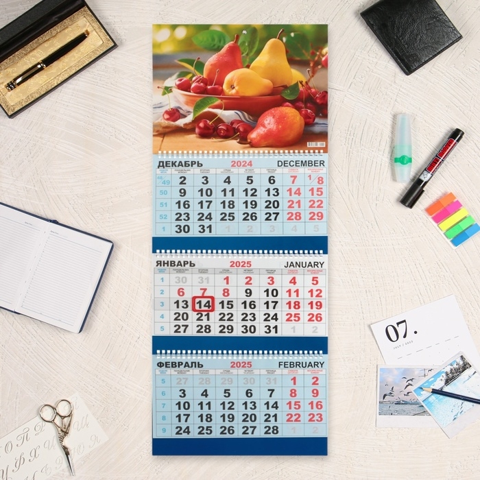 Календарь квартальный, трио "Сочные груши" 2025 год, 73 х 29 см 10618591