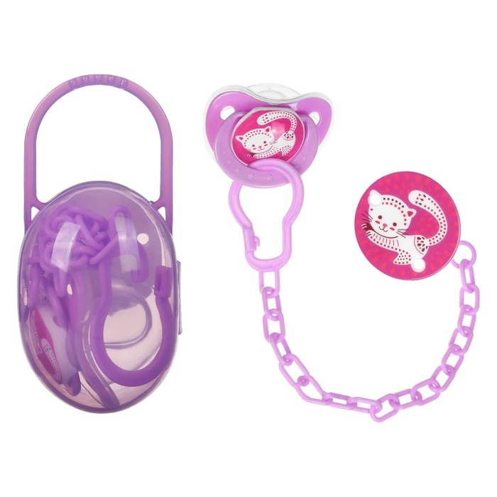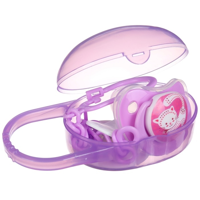 Соска - пустышка силиконовая ортодонтическая, от 0 мес., с колпачком, в контейнере + держатель, цвет МИКС