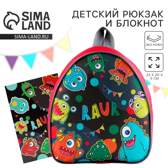 Детский рюкзак с блокнотом «Монстрики», 23х20,5 см