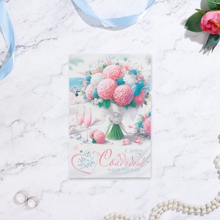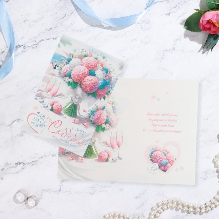 Открытка "С Днём Свадьбы! Вместе навсегда!" 19 х 29 см