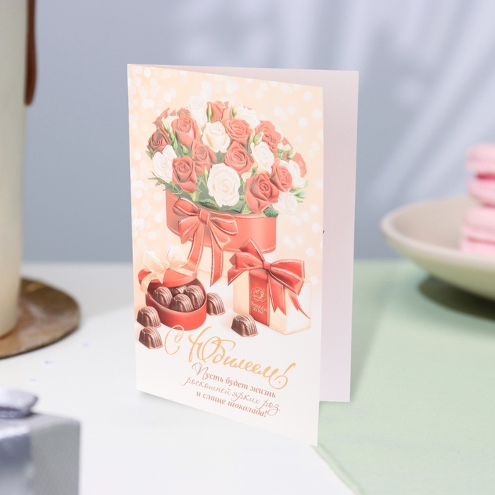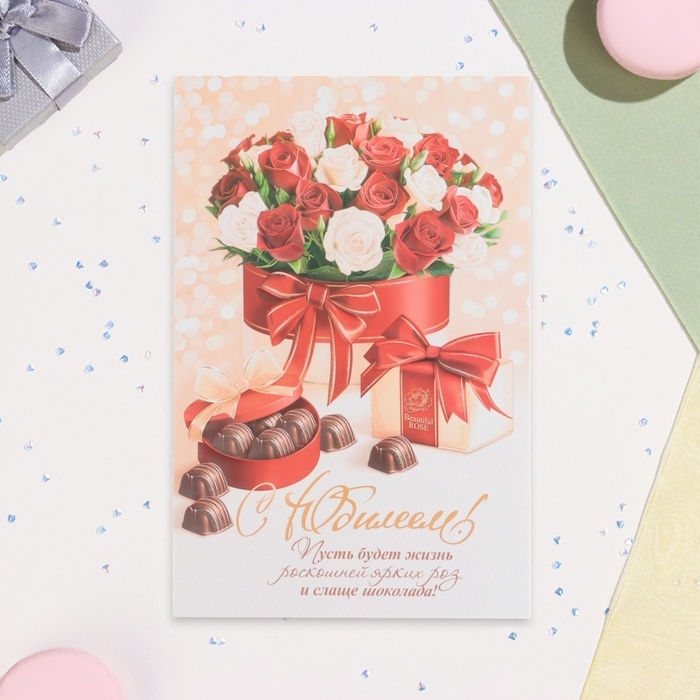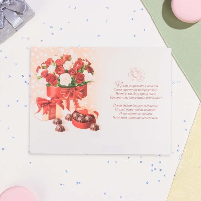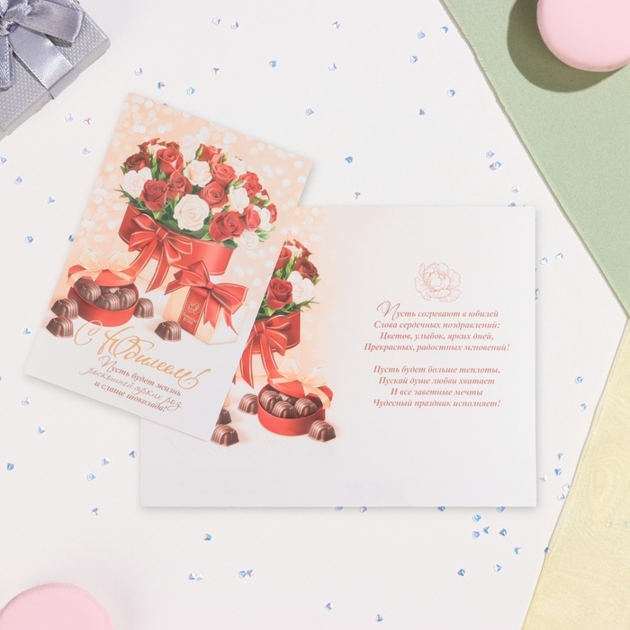 Открытка "С Юбилеем!" глиттер, конгрев, конфеты, 19 х 29 см