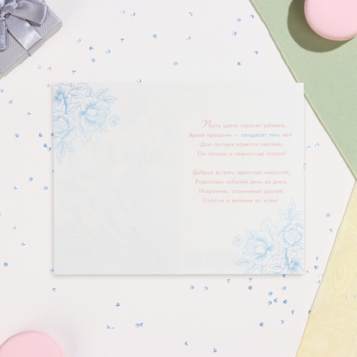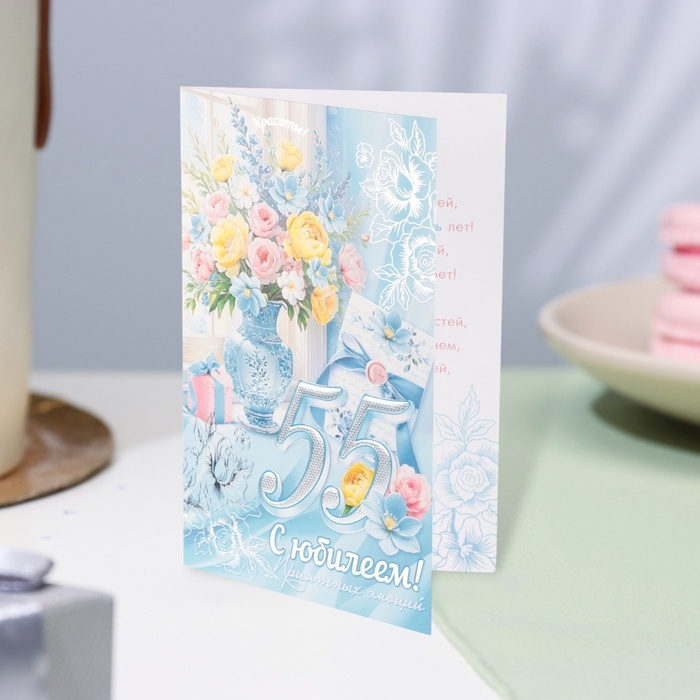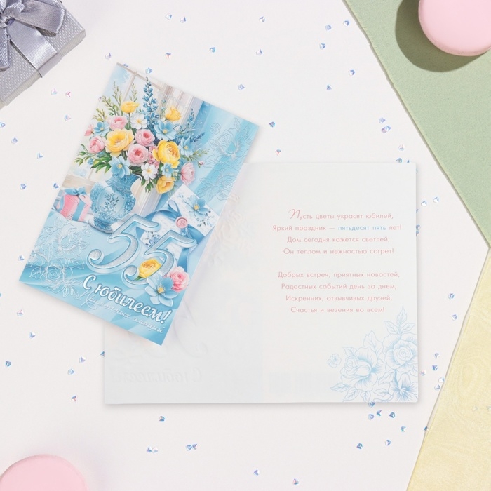 Открытка "С Юбилеем! 55" конгрев, тиснение, голубой фон, 12,5 х 19,5 см