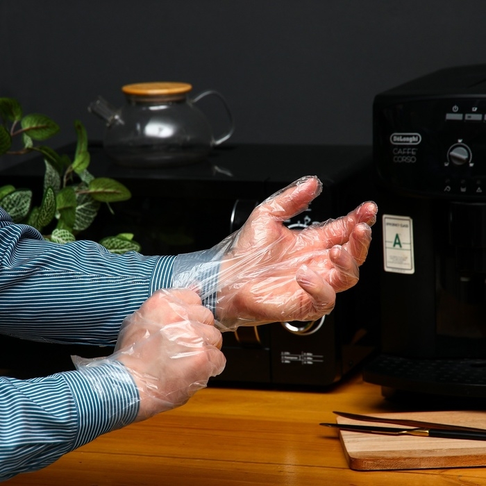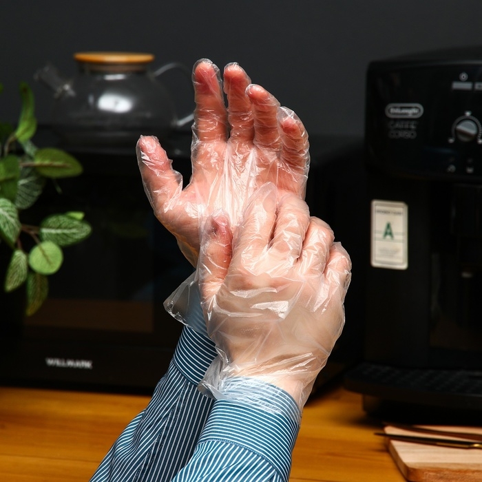 Материал: Перчатки изготовлены из полиэтилена - легкого, прочного и прочного материала, обеспечивающего надежную защиту рук от загрязнений и контакта с различными веществами.