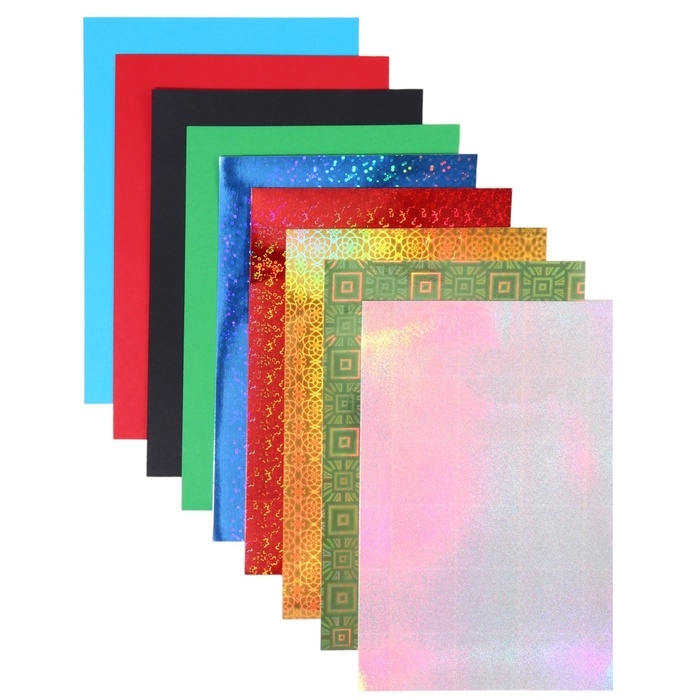Картон цветной с голографией, А4, 10 листов, 10 цветов, немелованный, двусторонний, в папке, 250 г/м², Человек-паук