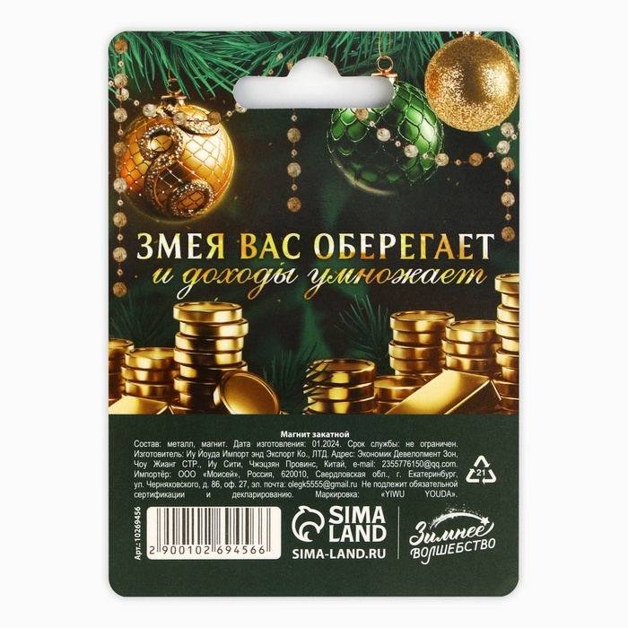 Магнит новогодний закатной «Новый год: С Новым удачным годом», диам. 5 см