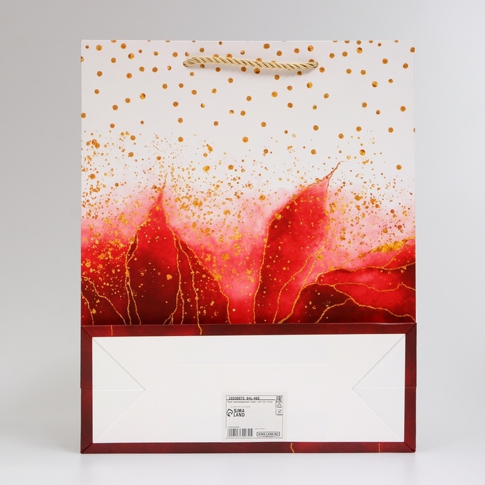 - Удобство использования: пакет оснащён прочным картонным дном и ручкой шнур, что облегчает переноску подарка.