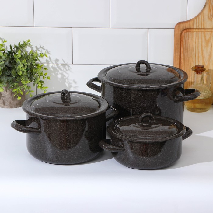 Набор эмалированных кастрюль «Гранит», 3 предмета: 1,5 л, 3 л, 4,5 л, цвет коричневый