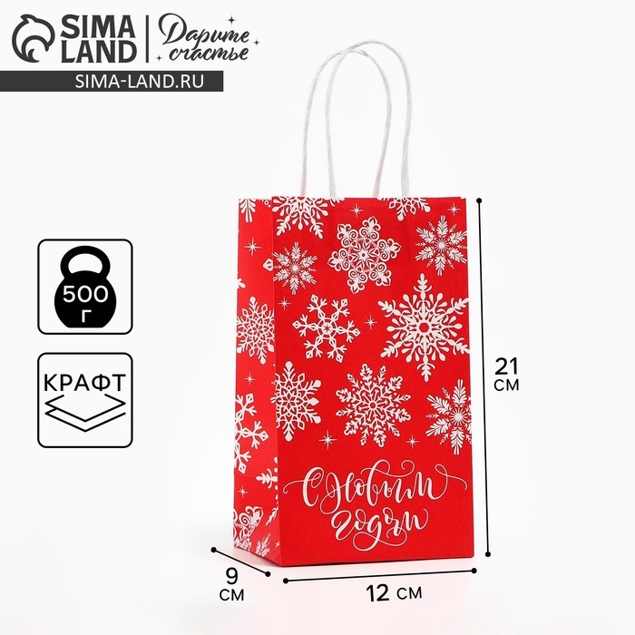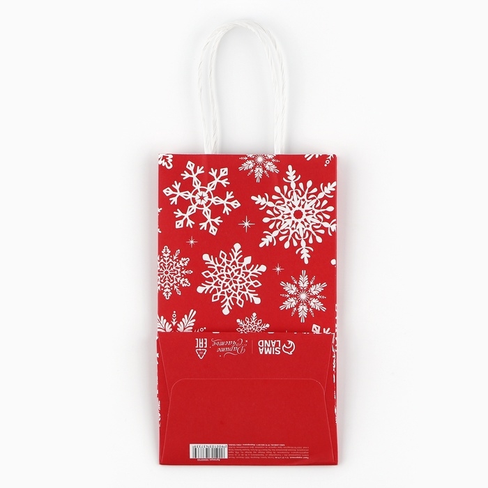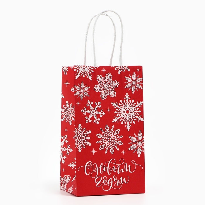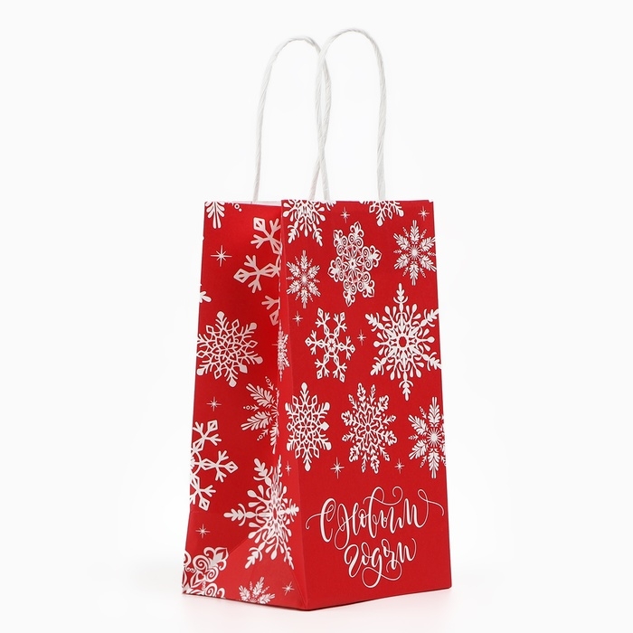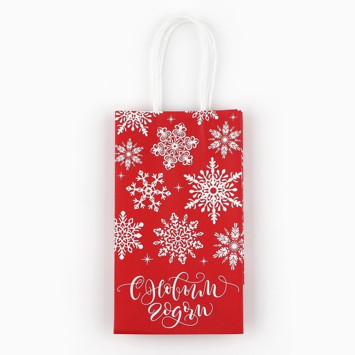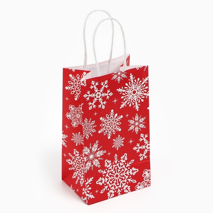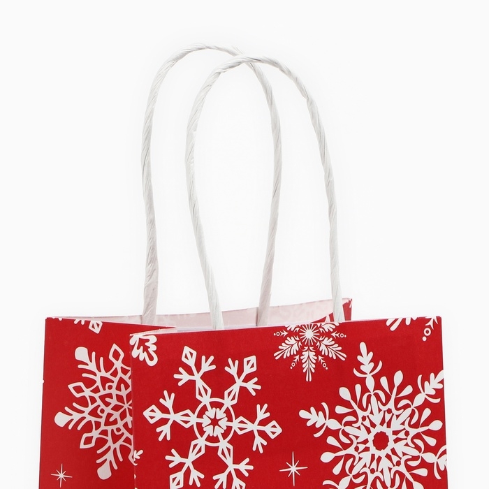 Пакет подарочный новогодний «Снежинки», белый крафт, 12 х 21 х 9 см , Новый год