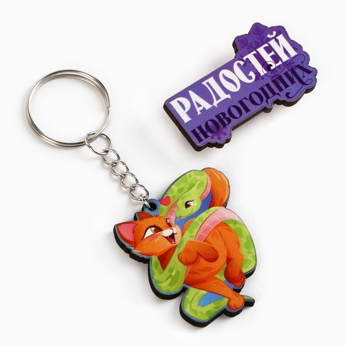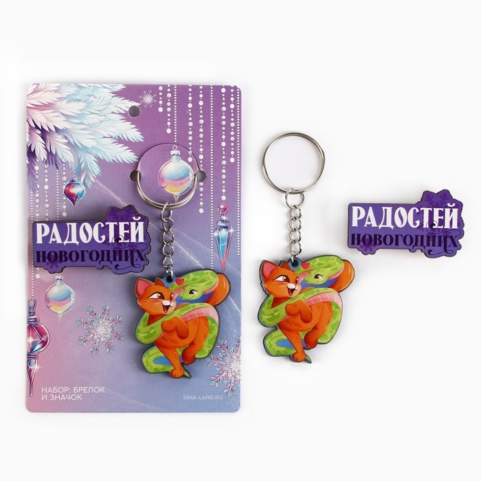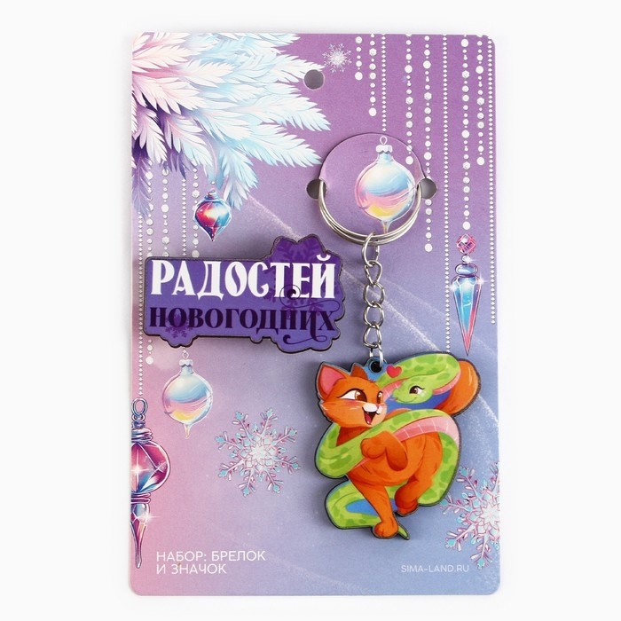 Подарочный новогодний набор «Новый год: Новогодних радостей» значок и брелок
