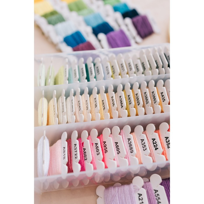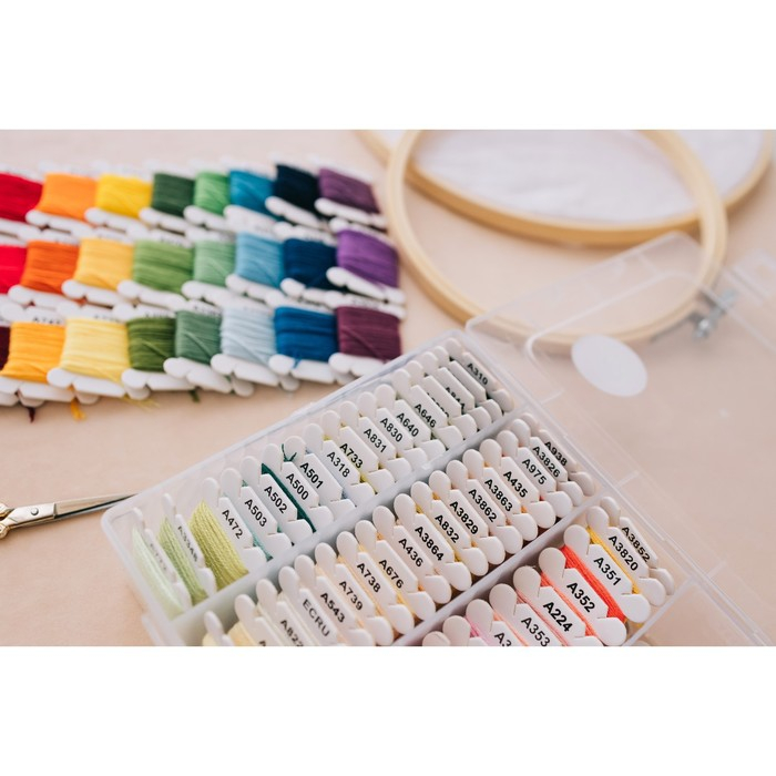 Набор включает в себя 80 мотков вышивальных ниток мулине по 4 метра.