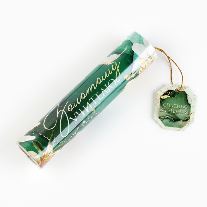 Ручка в тубусе «Золотому учителю, С Уважением!», пластик, синяя паста, 1.0 мм