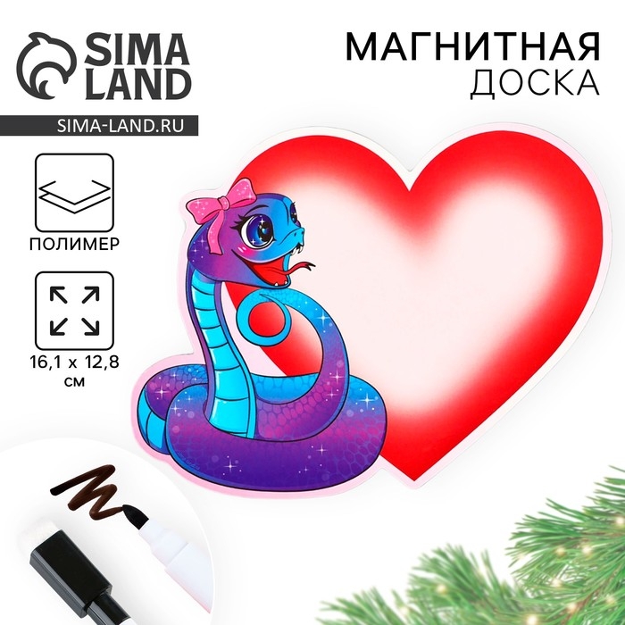 Магнитная доска с полем для записи и фломастером «Сердечко», на Новый Год, 16,1 х 12,4 см