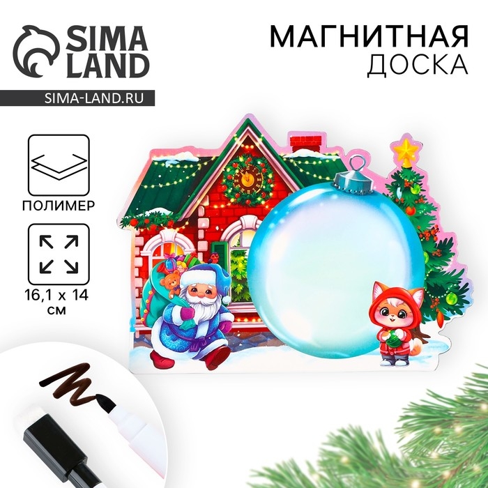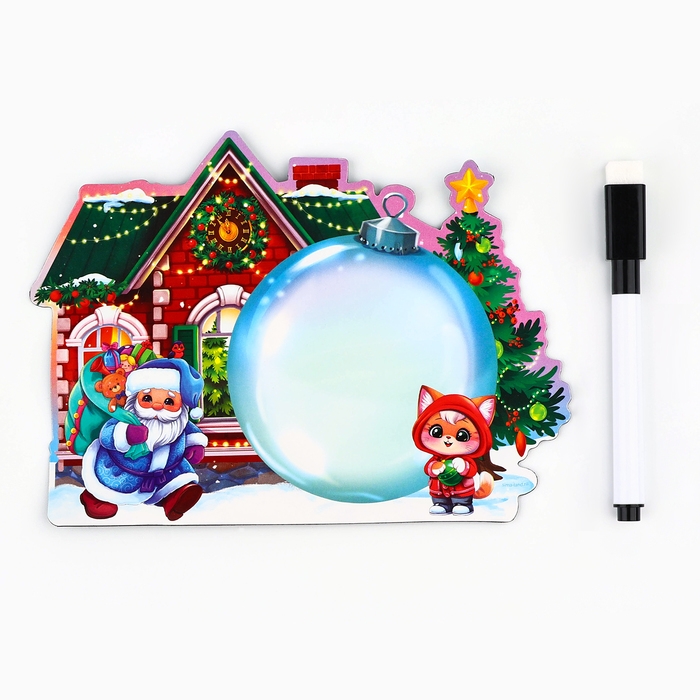 Магнитная доска с полем для записи и фломастером «Домик», на Новый Год, 16 х 11,9 см