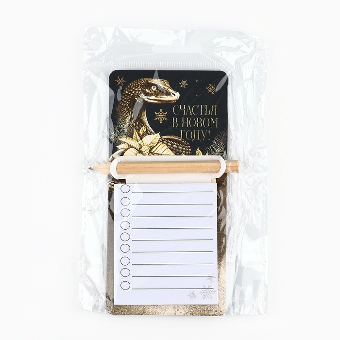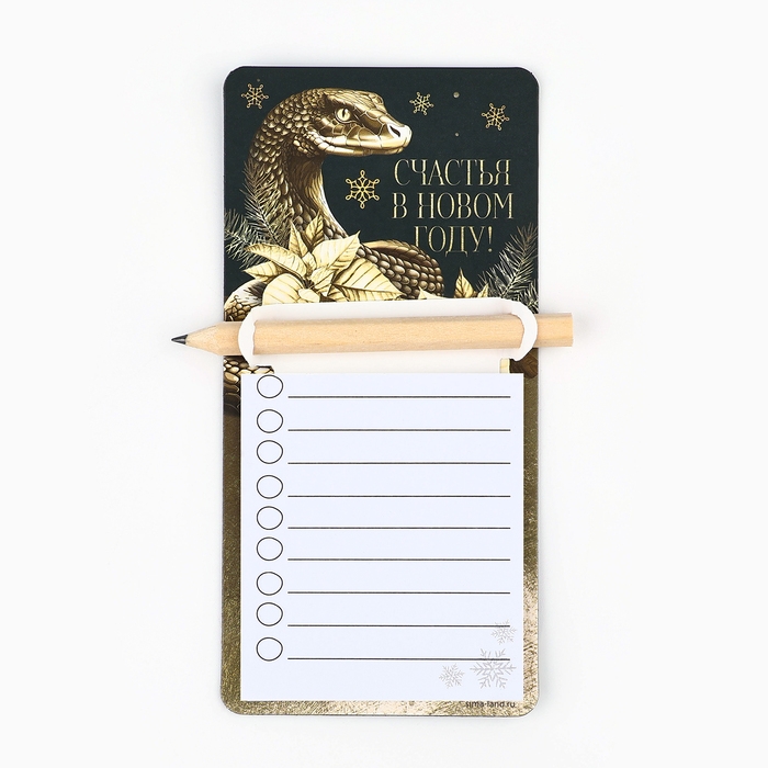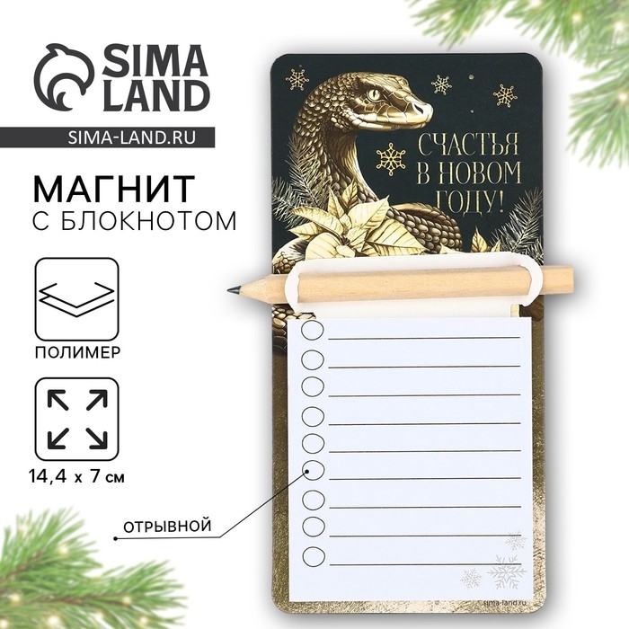 Магнит новогодний с блоком для записи и карандашом «Новый год: Счастья в новом году», 7 х 14,4 см
