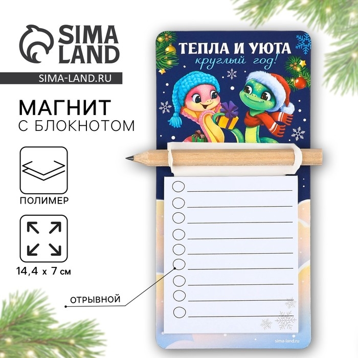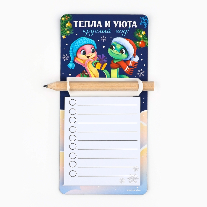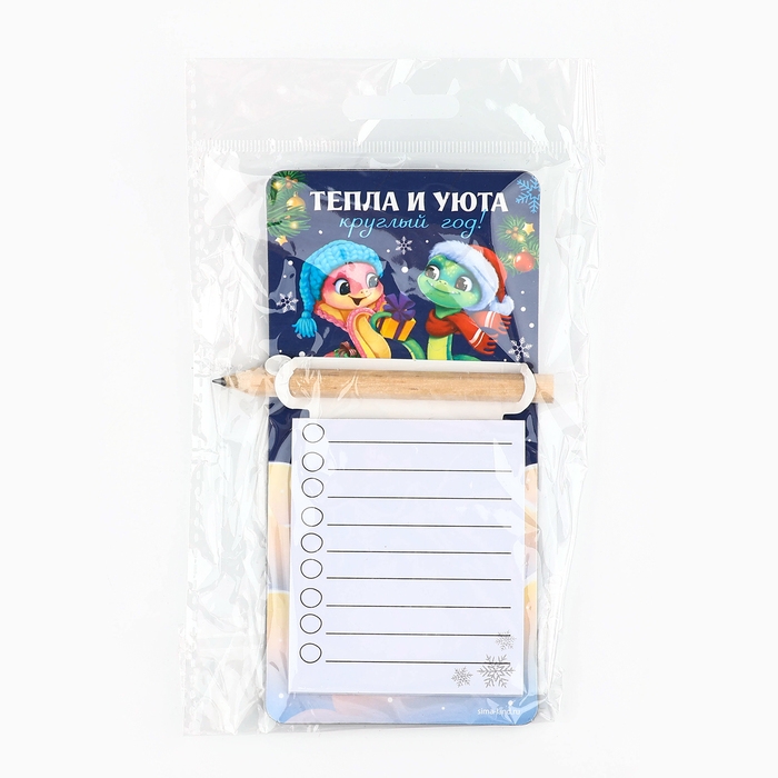 Магнит новогодний с блоком для записи и карандашом «Новый год: Тепла и уюта», 7 х 14,4 см