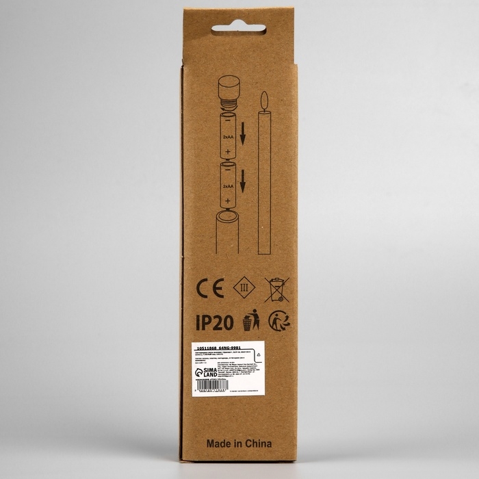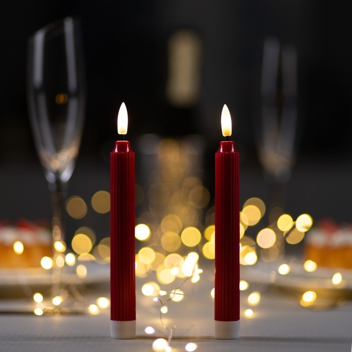 Светодиодная свеча восковая «Красная» 2 x 19 см, батарейки ААx2 (не в комплекте), свечение тёплое белое
