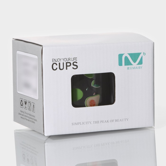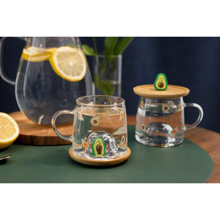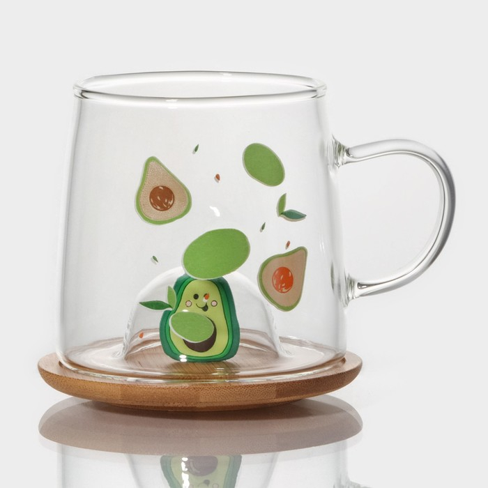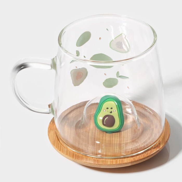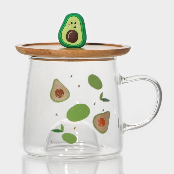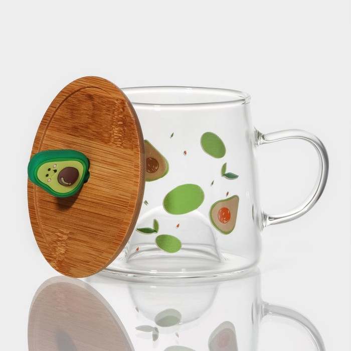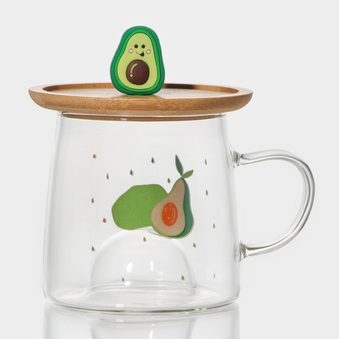 Кружка стеклянная с деревянной крышкой «Авокадо», 350 мл, рисунок МИКС