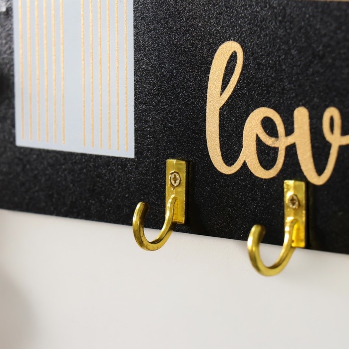 Крючки декоративные дерево "Любовь. Абстракция. Радуга" чёрная с золотом 20х9,3 см