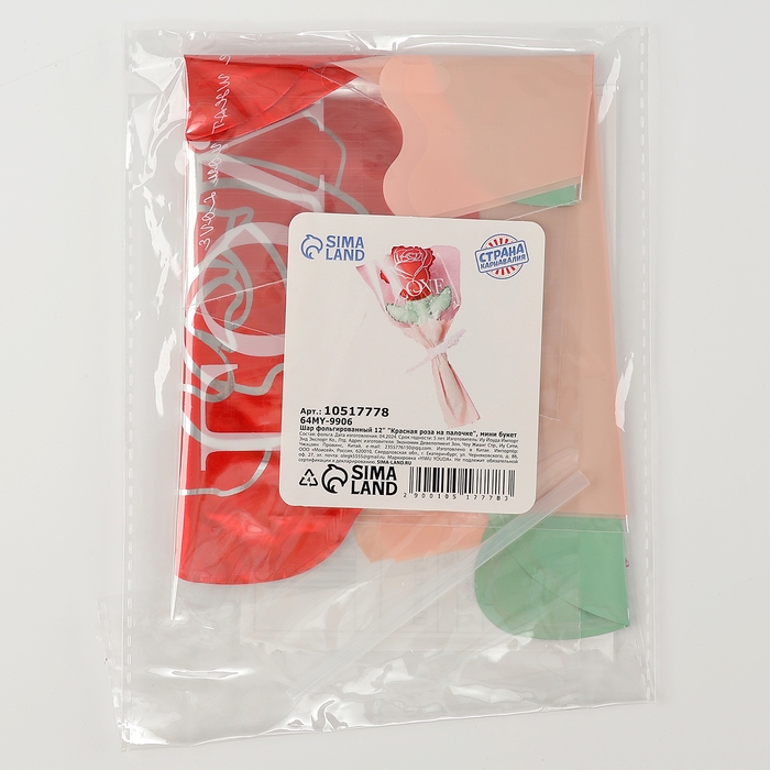 Шар фольгированный 12" «Красная роза на палочке», мини букет