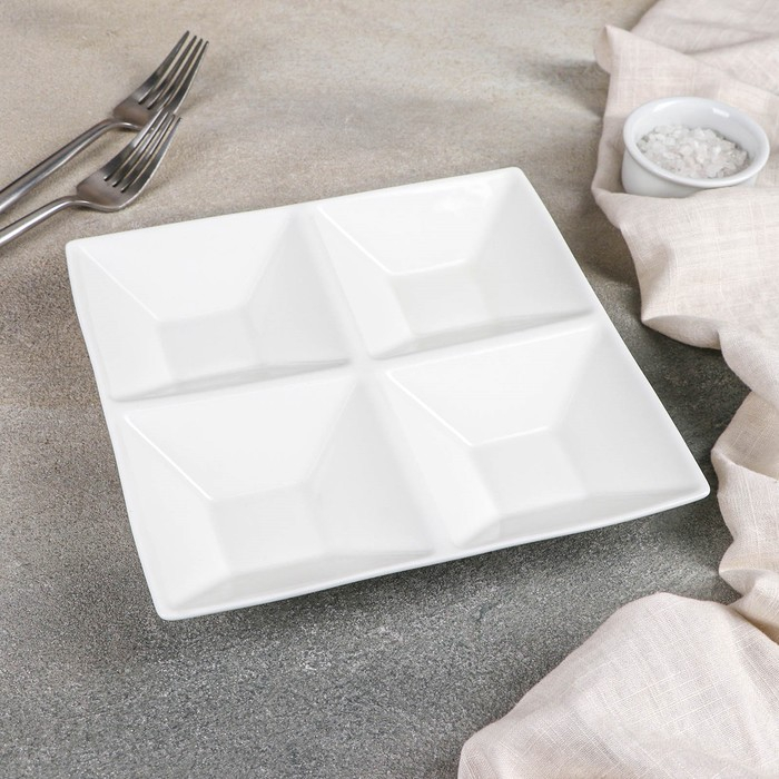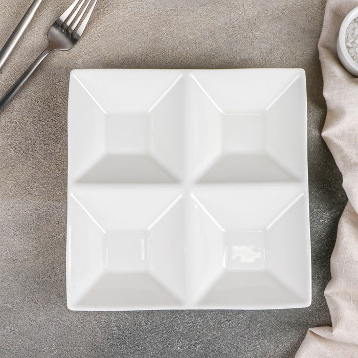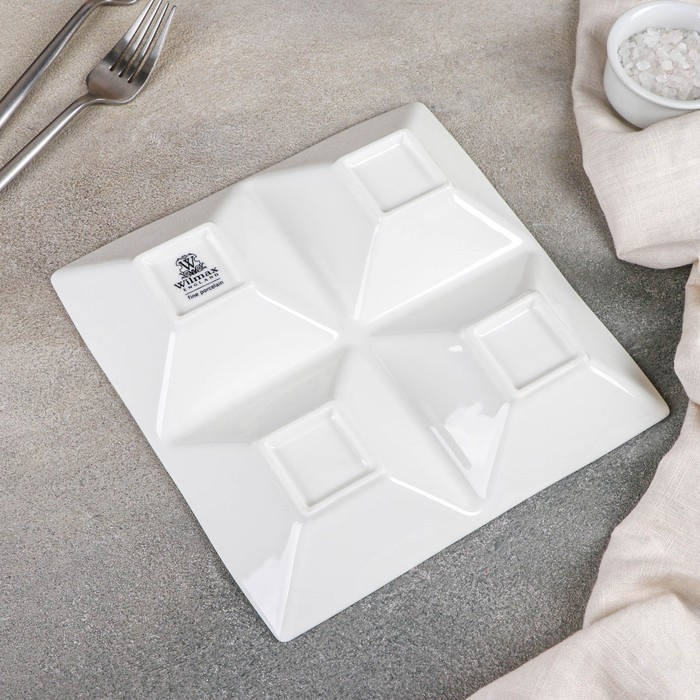 Менажница фарфоровая 4 ячейки Wilmax, 20×20 см, цвет белый