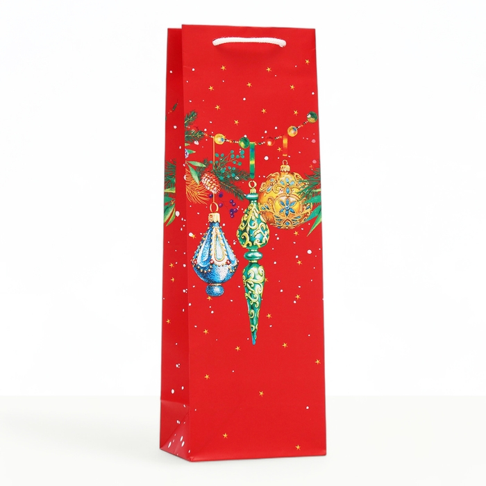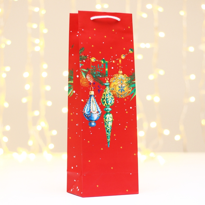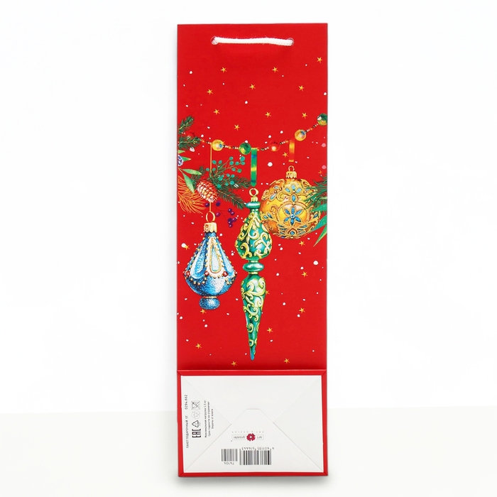 Новый год. Пакет подарочный "Игрушки на ёлку", 12 х 36 х 8,5 см.