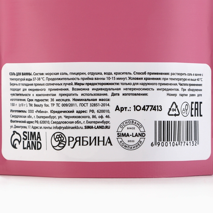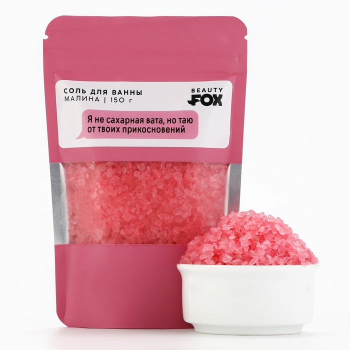 Соль для ванны "Я не сахарная вата, но таю от твоих прикосновений", 130 г, аромат малины, 18+, BEAUTY FOX