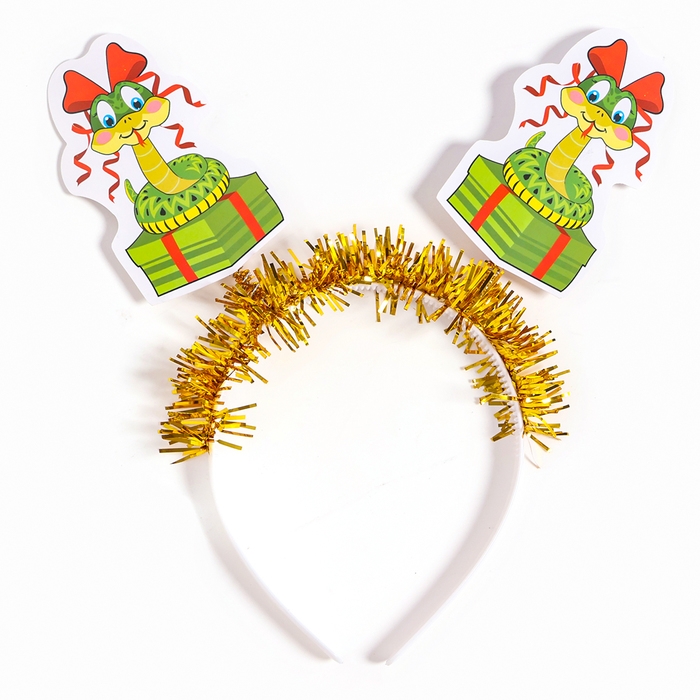 Карнавальный ободок «Змея с подарком» станет отличным дополнением к вашему костюму. Он украшен блестящей мишурой и подвижными змейками на пружинках, которые создают эффект движения. Фигурки змей выполнены из плотного картона и имеют яркую окраску.